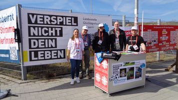 Am 18.03.2023 fand beim Fußballverein Jahn Regensburg vor dem Jahnstadion eine Aktion gegen Glücksspielsucht statt. Gleichzeitig spielte Jahn Regensburg gegen den SC Paderborn und gewann das Spiel mit 1:0. Der Betroffenenbeirat Bayern Stimme der SpielerInnen wurde von der Regensburger Caritas-Fachstelle für Glücksspielsucht eingeladen, sich an der Aktion zu beteiligen. Auch die Landesstelle Glücksspielsucht in Bayern war anwesend. Die Resonanz der Fußballfans war gut. Kinder und Jugendliche hatten sehr viel Spaß, sich an der aufgestellten Torwand auszuprobieren.