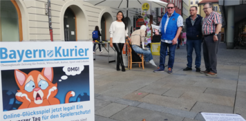 Dort wurde die Riesenzeitung der Landesstelle Glücksspielsucht in Bayern ausgestellt, und in Flyerform verteilt. Auch wurde eine Spielhallenszene aufgebaut, die zeigt, wie schnell man sein Geld am Spielautomaten verlieren kann.