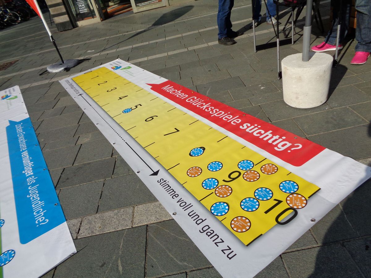 Zusätzlich hatten wir Schilder mit Fragen zum Glücksspiel und zur Glücksspielsucht aufgestellt.