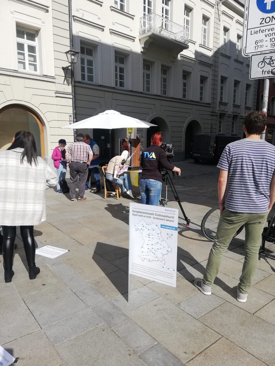 Vier Mitglieder unseres BB haben am 27.09.2023 am Europabrunnen in Regensburg eine Aktion durchgeführt. Dabei wollten wir Passanten auf die Problematik des Glücksspiels und der Glücksspielsucht aufmerksam machen. Für diese Aktion hatte uns die Landesstelle Glücksspielsucht in Bayern (LSG) Material für deren Masterkonzept zur Verfügung gestellt.